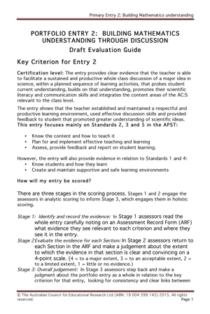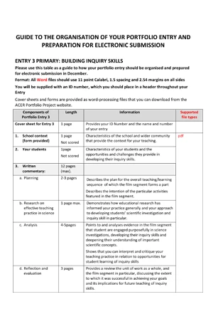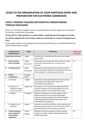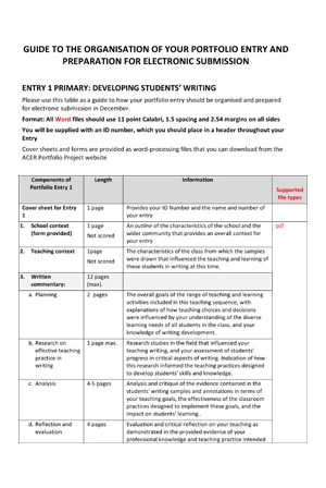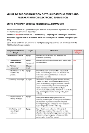 A summary of the guidelines for preparing primary teacher portfolio entries